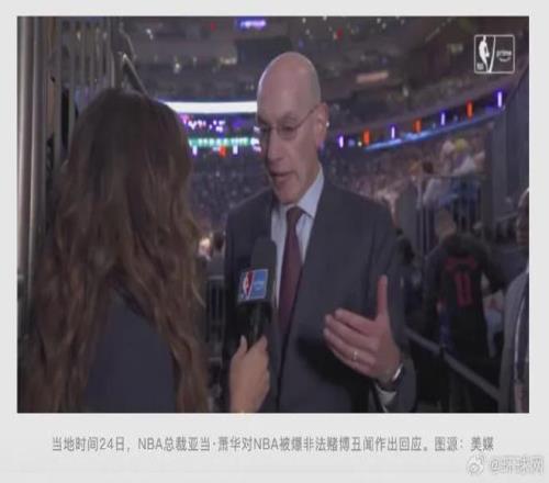 美国职业篮球联赛(NBA)被爆非法赌博丑闻。据法新社等媒体报道,NBA总裁亚当·萧华当地时间周五(24日)就此首次回应称,他对相关指控“深感不安”,并向球迷道歉。